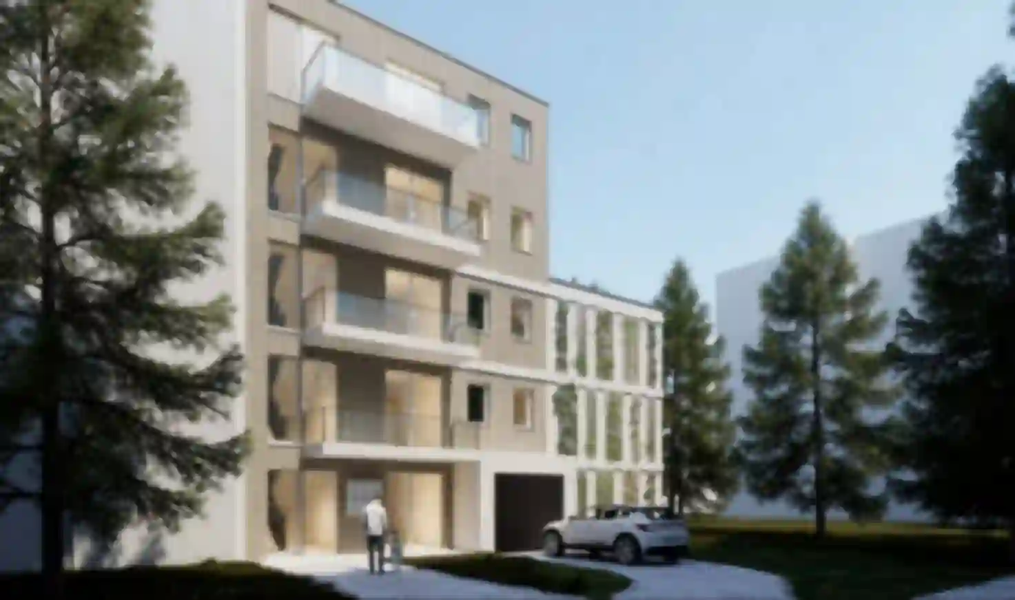 Der Baukörper gewinnt zudem durch hervorspringende und eingeschobene Balkone sowie eine berankte Fassade an Profil.