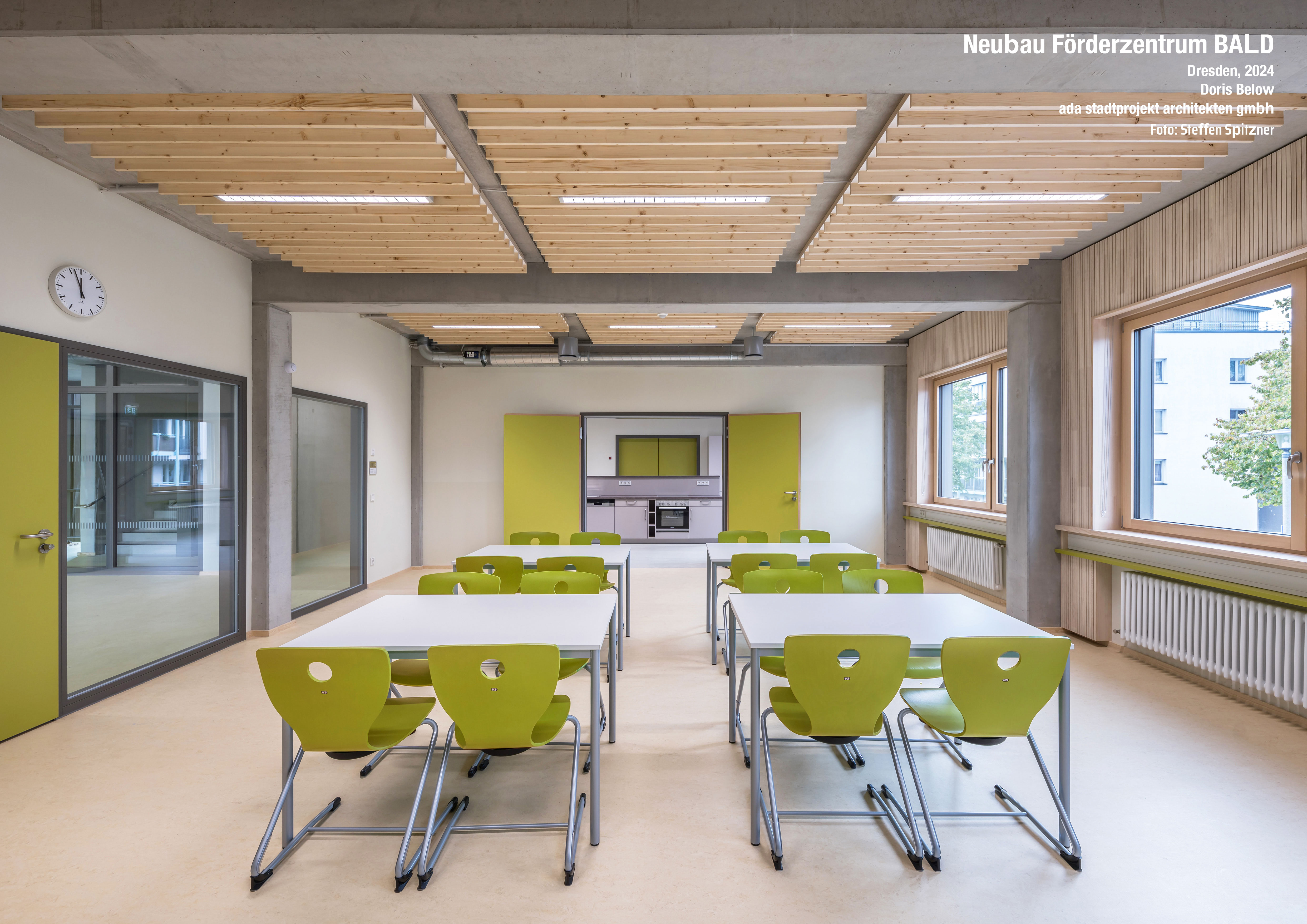 Als Schulgebäude in Holz-Hybrid-Bauweise in Dresden wurde der Neubau im Oktober 2024 zur Nutzung übergeben. Die Gestaltung des Schulgebäudes orientiert sich an dem besonderen Schulkonzept der berufsorientierenden Ausbildung in zahlreichen Werkbereichen. Prägend für das Bauwerk sind übersichtliche Gebäudestrukturen und Raumzuordnungen, welche – neben den städtebaulichen Rahmenbedingungen und Gesichtspunkten des nachhaltigen Bauens – wichtige Entwurfsprämissen waren. Stahlbetonskelettbauweise und offene Installationsführungen ermöglichen die nachhaltige Nutzung; nachträgliche räumliche Anpassungen sind bei Weiterentwicklung des Schulkonzeptes mit geringem Aufwand umsetzbar. Die Erlebbarkeit verwendeter Materialien im Außen- und Innenraum sowie die sichtbare technische Gebäudeausstattung unterstützen das pädagogische Konzept der Lernbereiche Bautechnik, Farbtechnik, Holztechnik, Elektrotechnik und Umwelttechnik.