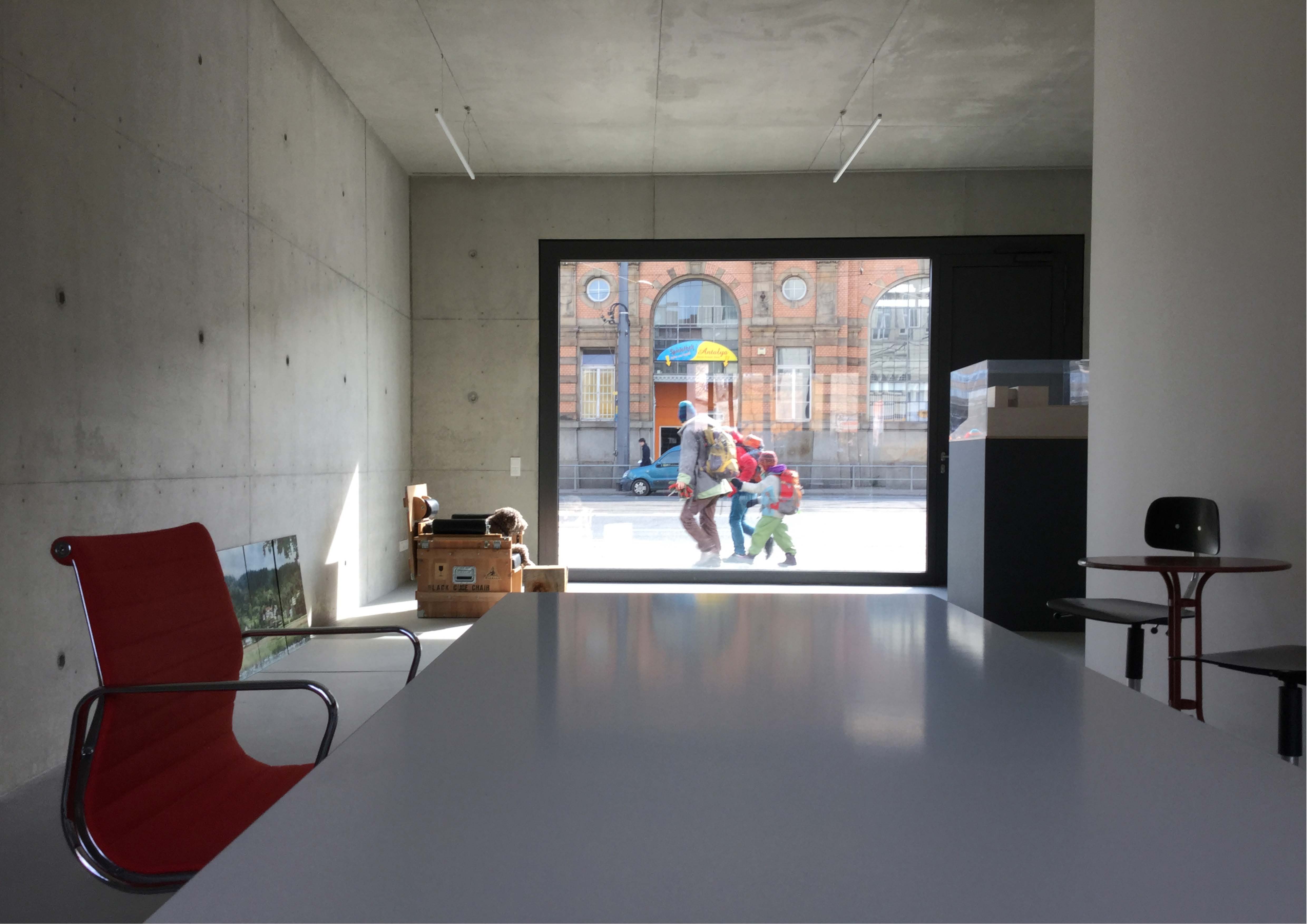 Der unmittelbar am Bahnhof-Mitte gelegene Baukörper, bildet einen kontrastreichen Baustein in der noch zum Teil lückenhaften, historischen Blockrandbebauung in der Dresdner Friedrichstadt. Zahlreiche Straßenbahnlinien kreuzen den Bahndamm.