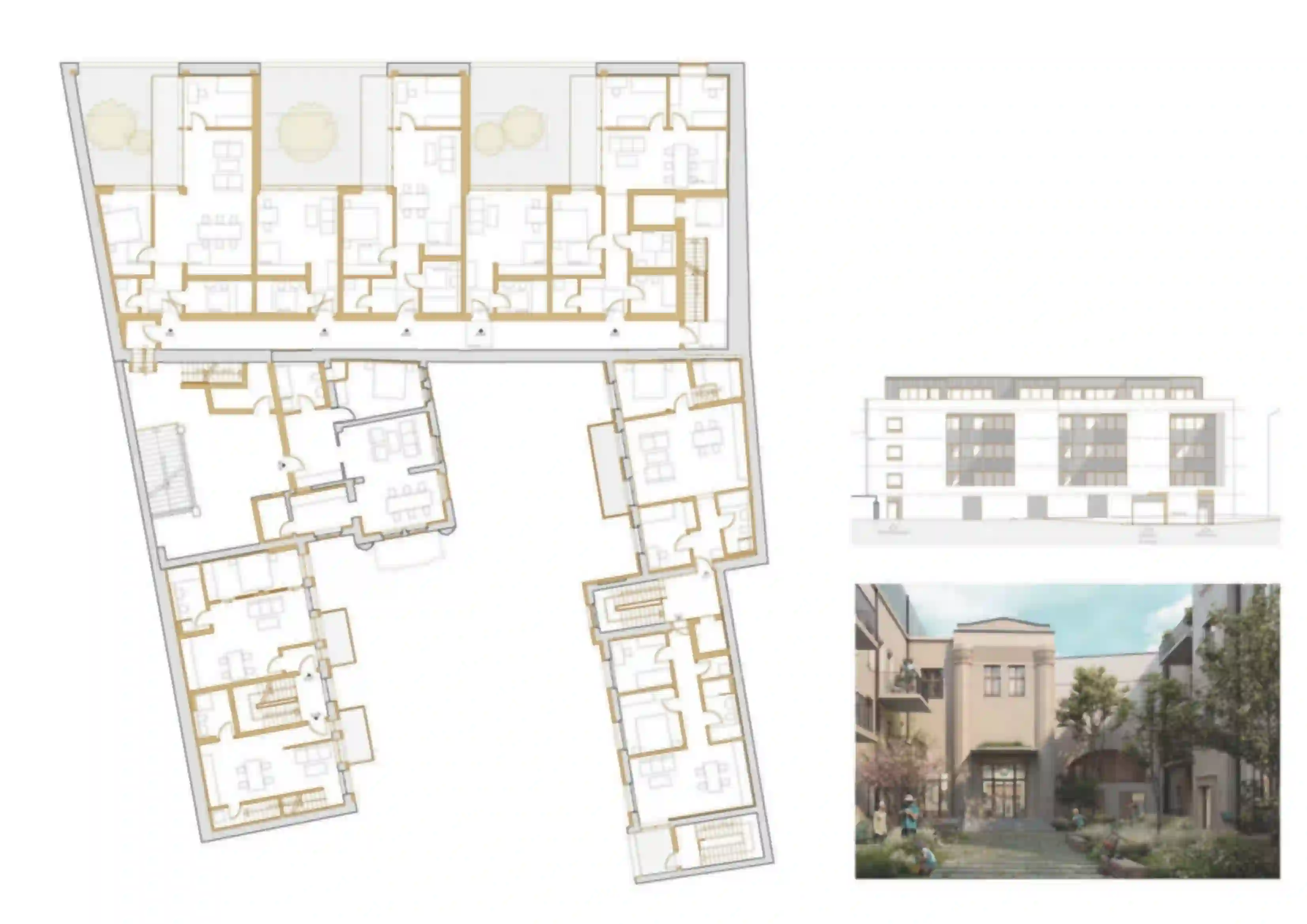 Von der ehemaligen Schauburg in Halle (Saale) existiert nur noch ein denkmalgeschütztes Eingangsportal sowie eine große ausgebrannte Halle und einige Nebengebäude. Die Halle wurde durch das Einschneiden von Innenhöfen einer Wohnnutzung zugefügt. Der ehemalige Eingangsbereich wird durch die Nutzung als Zweiter Rettungsweg wieder erlebbar gemacht. Mit den Hofgebäuden entsteht ein Ensemble mitten in der Innenstadt, das Altes und Neues verbindet und ablesbar macht. Das Projekt befindet sich in Planung und wurde bisher noch nicht umgesetzt.